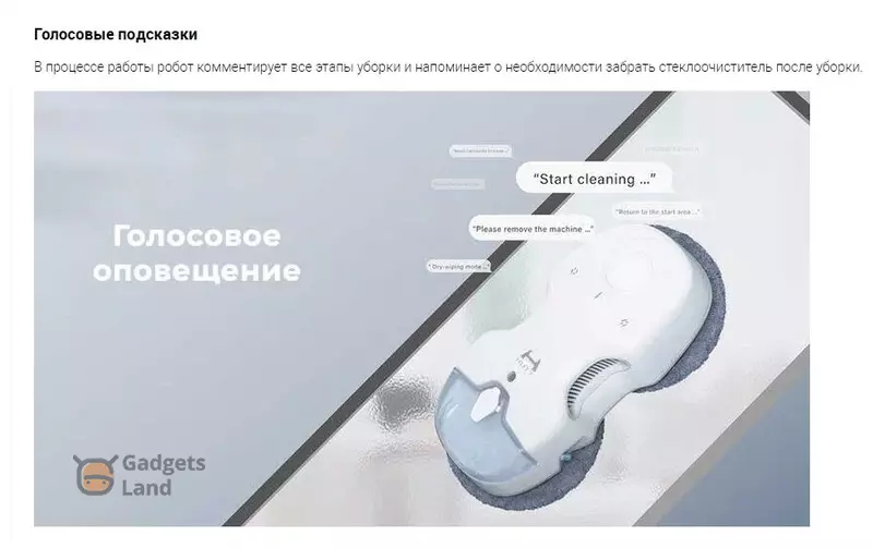 Особенности: автоматическая остановка, обход препятствий, мойка безрамных поверхностей, автоматическое определение зоны уборки, звуковая индикация, светодиодная индикация